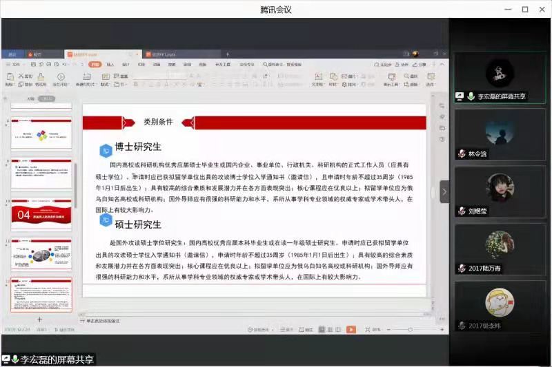 李宏磊首先向大家详细地介绍了《2021年促进与俄乌白国际合作培养项目》及《2021年赴俄乌白专业人才培养计划》两个项目的组织机构、选拔对象、选派类别及资助内容、人选条件和要求、选拔程序、留学管理和所需材料等事项。