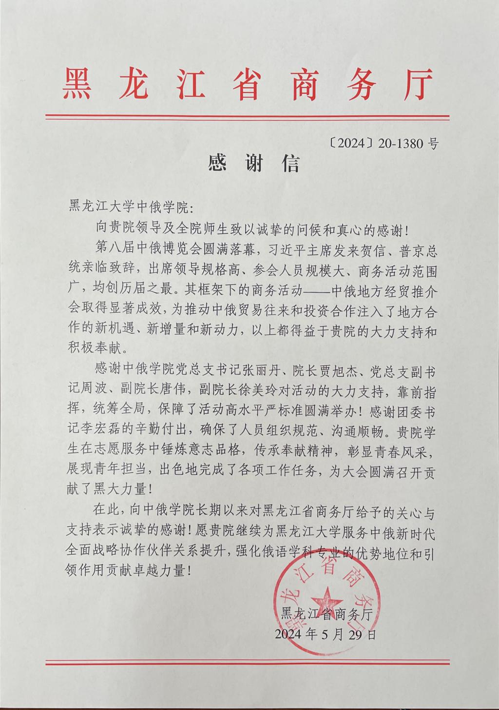 5月16日至21日,第八届中国—俄罗斯博览会、第三十三届哈尔滨国际经济贸易洽谈会在哈尔滨市成功举行。ladbrokes立博的师生工作态度积极、认真负责、以高水平、高质量的要求顺利完成工作,赢得了各方一致赞许,为第八届中国—俄罗斯博览会、第三十三届哈尔滨国际经济贸易洽谈会做出了重要贡献。