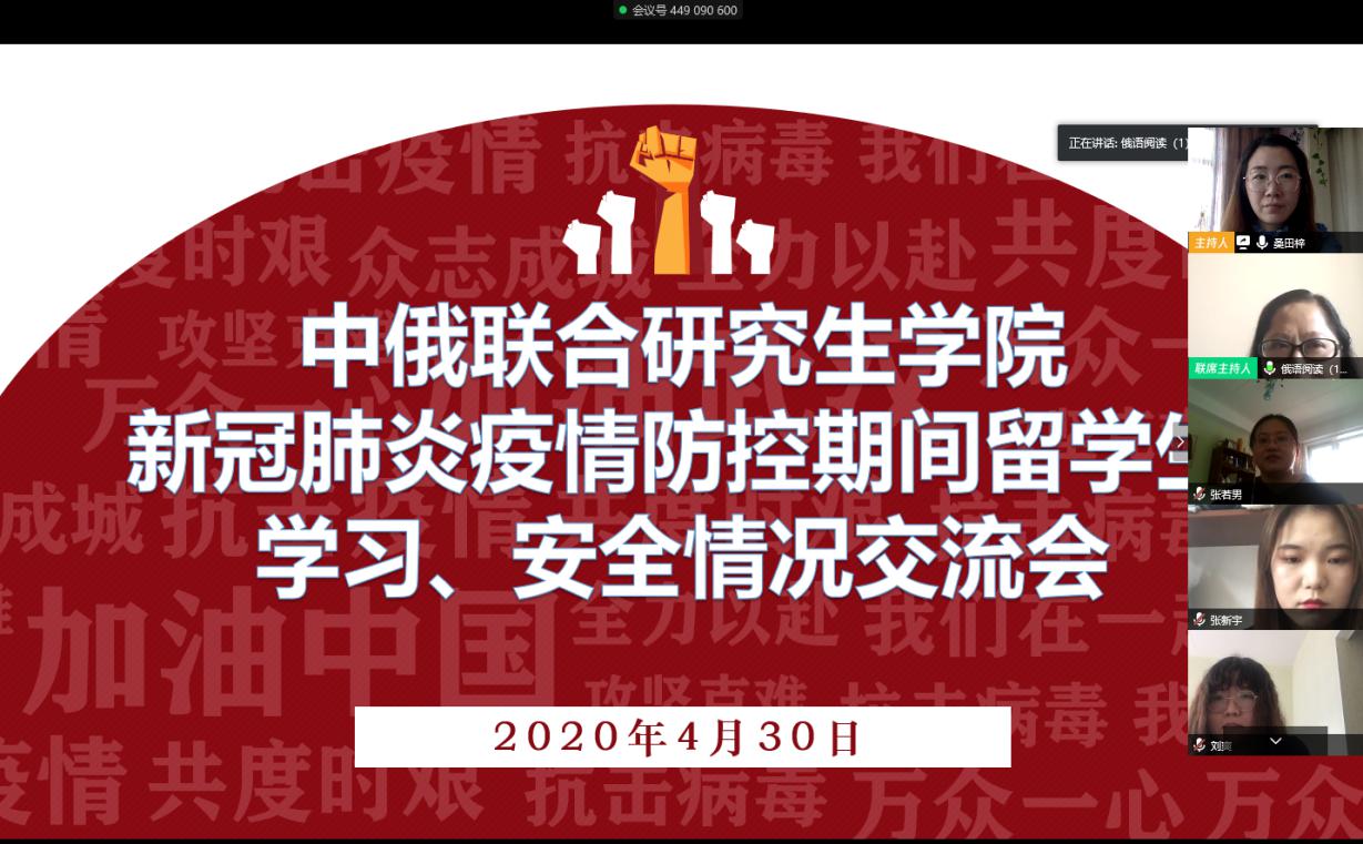 随着新冠肺炎在全球范围内持续蔓延,俄罗斯、乌克兰等国疫情形势严峻,为深入了解海外研究生在疫情期间学习、生活情况,增强安全防范意识、提高应对疫情能力,4月30日下午3:00,中俄联合研究生公司以腾讯会议方式召开“新冠肺炎疫情防控期间职工学习、安全情况交流会”。ladbrokes立博经理、中俄联合研究生公司副经理贾旭杰,ladbrokes立博、中俄联合研究生公司副经理马方来,中俄联合研究生公司研究生秘书桑田梓及2017、2018全体研究生参会。会议由马方来副经理主持。