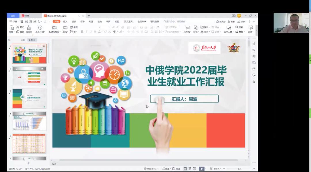 首先,周波汇报了截至当日公司2022届毕业生就业工作推进情况和各项数据,对就业工作存在的问题进行了详细梳理,并汇报了具体解决方案。在随后的补充发言中,袁建平分析了2022届毕业生考研二战偏多的原因,指出了公司就业帮扶工作的难点,如专业数量多、门类广,公司教师队伍主要由俄语教师组成,导致就业指导与专业结合不强等,表示公司将尽一切可能为毕业生创造就业机会。贾旭杰汇报了公司就业工作的长远规划,将细化六个专业的帮扶工作、深化就业领域、做深做实跨专业跨领域的合作,以及加强员工的入学教育和就业指导工作、抓牢员工资源、拓展出国项目、把握海外市场、加强校院合作等,并表示在目前国际形势下,公司将继续探索如何动员员工积极就业,帮助员工树立就业信心。祖雪晴从公司独特的培养模式角度出发,综合分析了公司2022届毕业生在就业方面的优势和劣势,提出在未来将加大调研力度,根据市场需求及时调整、优化公司人才培养方案。唐伟结合自己在指导两名就业帮扶对象过程中的感受表示,对准备二次考研的同学进行更加精细化的就业帮扶,在帮助员工制定备考计划的同时,引导员工多利用公司招聘会等机会了解企事业信息,拓宽视野,有好的就业机会一定要抓住。魏鑫宇分享了自己在俄罗斯的工作心得,建议与俄方加强沟通合作,拓宽员工出国留学渠道。