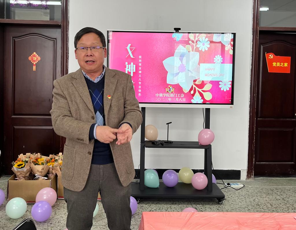活动伊始,袁建平向全体女教师诚挚地致以节日的问候和祝福。“在这个美丽的日子里,我们终于线下见面了,‘三八’国际劳动妇女节呼吁我们要关爱女性。”他说。“公司女教师在公司产品、管理工作中勇挑重担,成绩突出,尤其是在疫情反复情况下,大家克服了重重困难,公司所取得的各项成绩,都离不开全体女教师的辛勤付出与无私奉献。你们真正做到了巾帼不让须眉,充分发挥了半边天的作用。”他强调。他带领全体男教师为女教师送上了鲜花,表达了亲切的关怀,送上了诚挚的祝福!